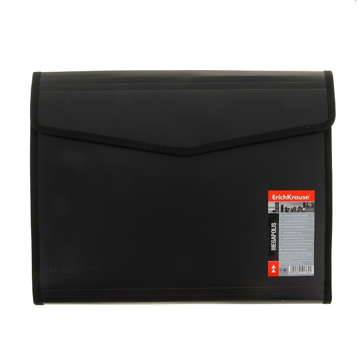 Конферентна папка Портфолио ErichKrause® MEGAPOLIS, 6 Джоба, ЧЕРНА