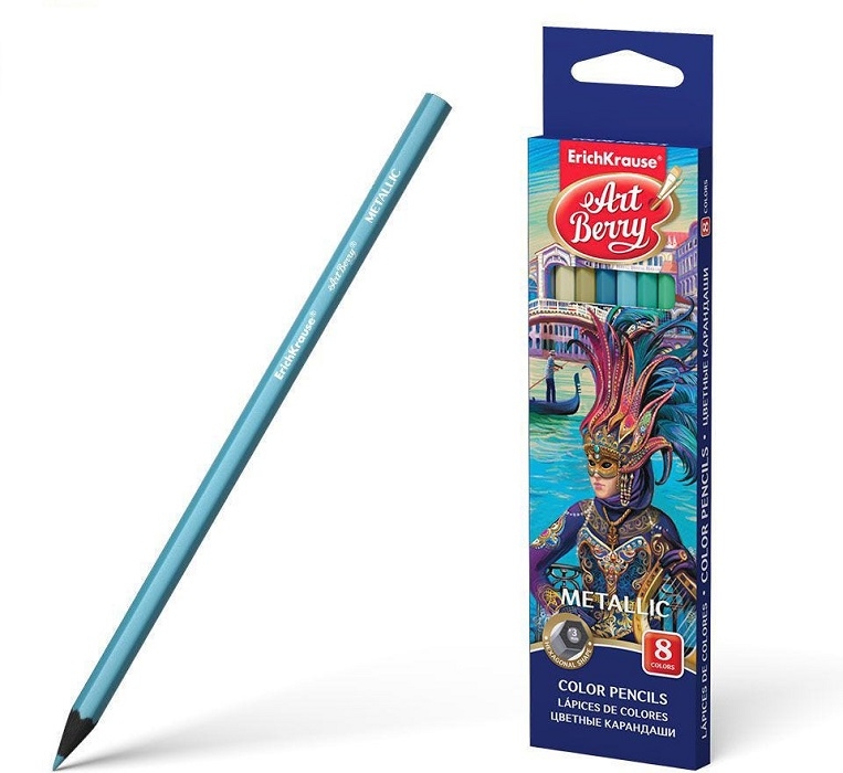 Цветни моливи ErichKrause ArtBerry® Metallic, шестоъгълни, 8 цвята
