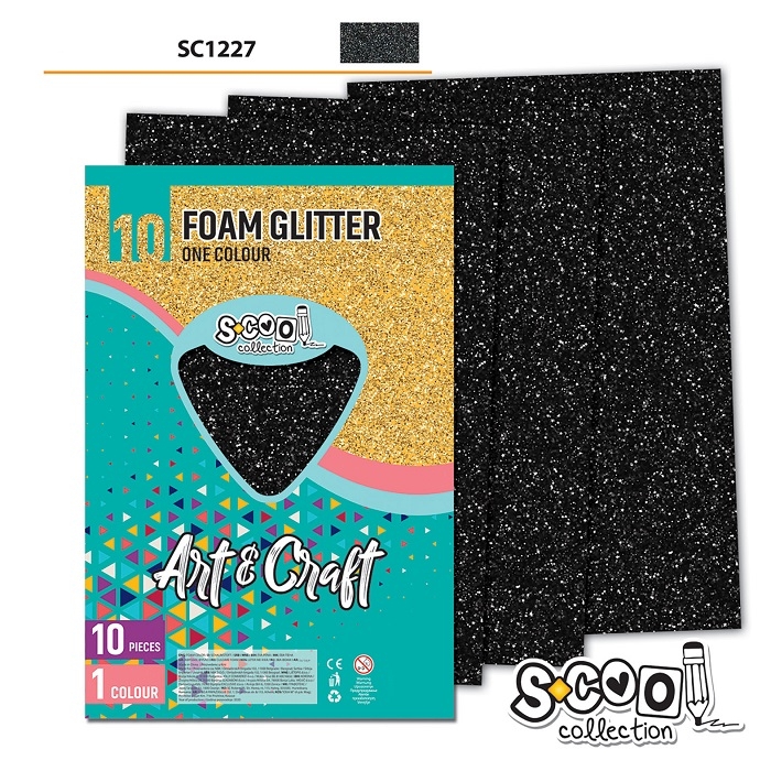 Гума пяна EVA S-COOL за декорация, ГРАФИТ, брокат, А4