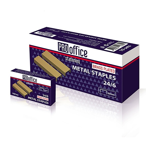 Телчетата “PROOFFICE” 24/6 в меден цвят са метални, с размер стандарт 24/6, и предлагат стилна и функционална опция за групиране на документи. Подходящи за ежедневна употреба в офиса, в дома или в учебна среда.