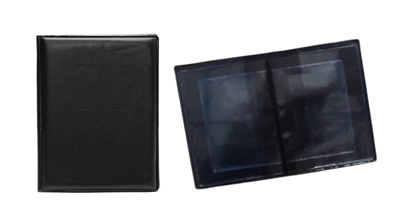 - картодържач с: 2 разделения 9х6см, 2 разделения 11.5х8см и 2 странични отделения, на корицата: 9х6см