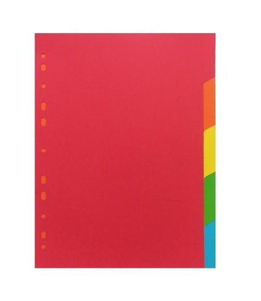 Разделителят 5 цвята картон е подходящ за разделяне на отделни видове документи или теми. Притежава перфорация за поставяне в класьор или папка, което го прави подходящ за употреба в офиса и дома.
