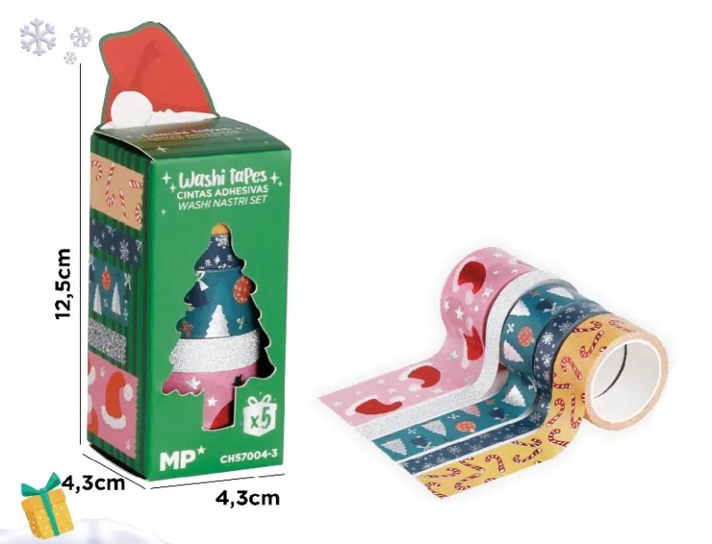 Създайте празнична атмосфера с комплекта Коледни тикса MP. Всяка опаковка съдържа 5 самозалепващи се декоративни ленти с различни коледни мотиви с размери 10мм/5м