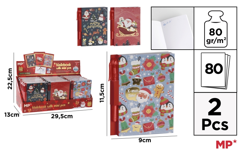 Коледен мини тефтер + химикалка – Празничен комплект за писане