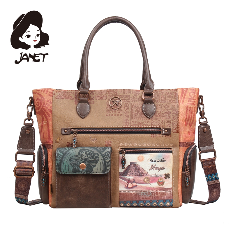 Чантата JANET „MAYA JOURNEY“ е стилен и практичен аксесоар, създаден с мисъл за модерната жена и момичето, което търси индивидуалност. Размерите 39.5× 14× 28.5см я правят удобна за ежедневна употреба — идеална за работа, свободно време или пътуване. Марката JANET се отличава с екологична ангажираност: тази чанта е изработена без материали с животински произход, от висококачествена изкуствена кожа, която изглежда и се усеща като естествена.