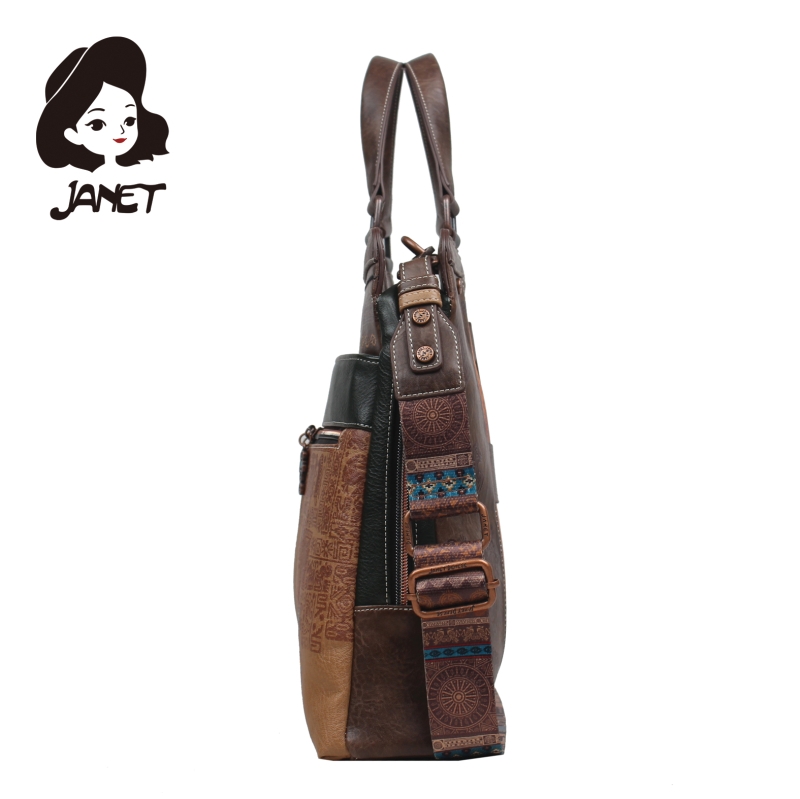 Чантата JANET MAYA JOURNEY съчетава изискан дизайн, функционалност и отговорност към природата. Изработена е от висококачествена еко кожа (PU) – устойчива, мека на допир и напълно без животински произход. Моделът е част от серията MAYA JOURNEY, вдъхновена от идеята за пътуването като стил на живот – елегантен баланс между градска визия и естествена естетика.
