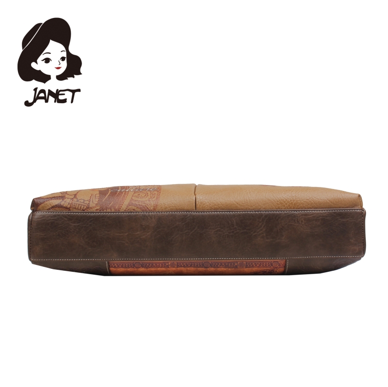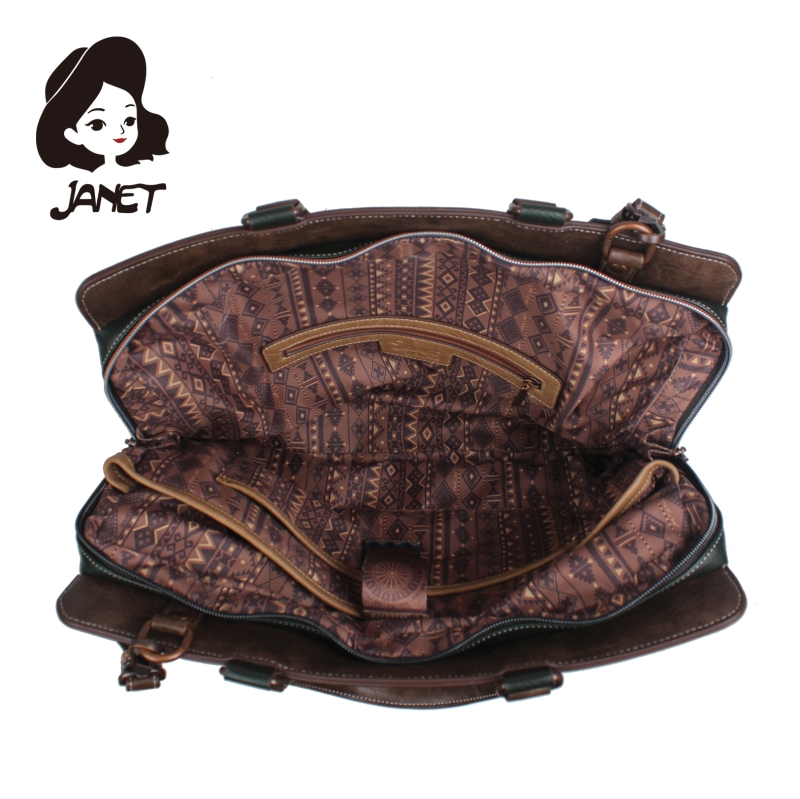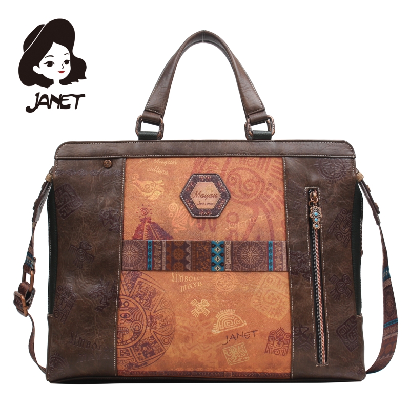 Елегантна и компактна дамска чанта с размери 41 × 6.5 × 31см, изработена от висококачествена изкуствена кожа (PU) без животински произход. Идеална за ежедневна употреба, за работа или свободно време. Разполага с основно отделение с цип и няколко джоба. Марката JANET се откроява със своята екологична философия – използване на рециклирани материали и устойчив дизайн. Налична в серия “MAYA JOURNEY”, която се отличава с артистични детайли и богат избор от цветове.