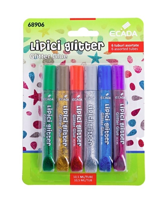 - опаковка: блистер брокатено лепило 6 цвята x 10.5 мл